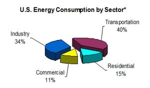 By convention, the energy-consuming activities of society are divided into the four sectors described below: residential, commercial, industry and transportation. The pie chart below shows the percentage of total U.S. energy delivered in a year to each sector, according to recent U.S. Energy Information Administration figures. Note that the very same pie chart describes the average per capita energy consumption of Americans in the four sectors.